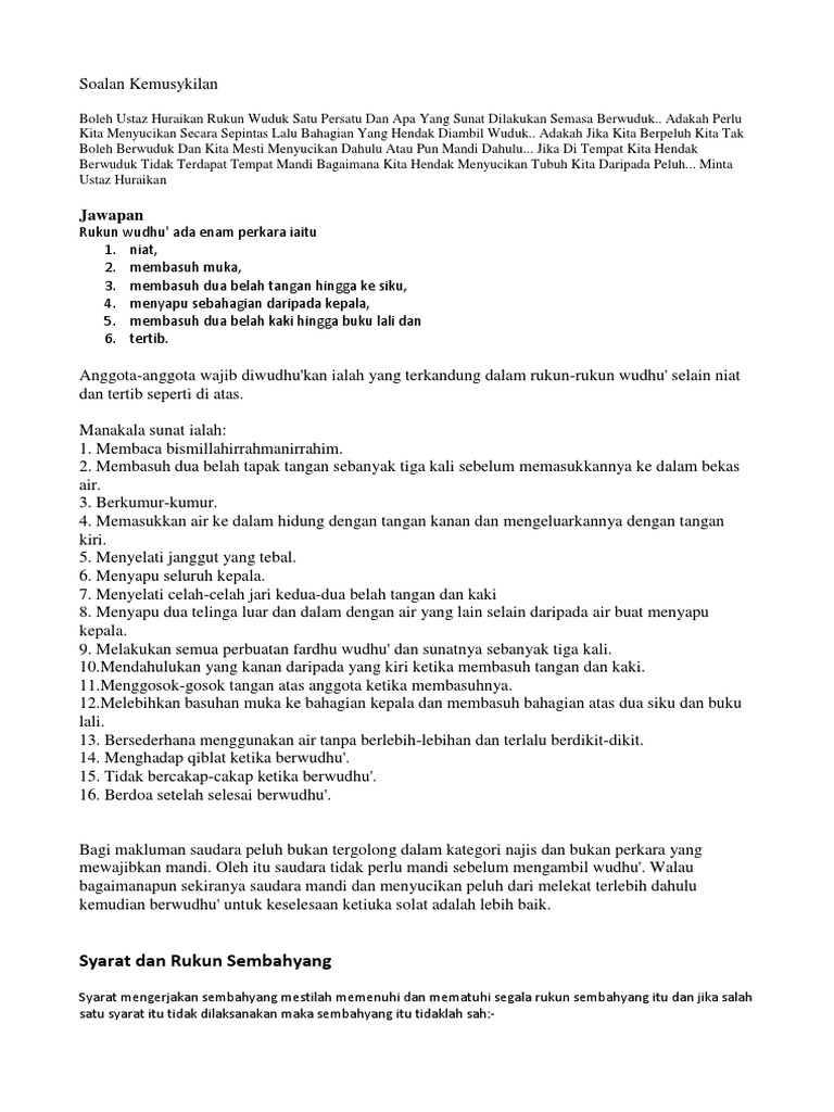 Cara Berwuduk Rukun Sunat Wuduk Tahun 1