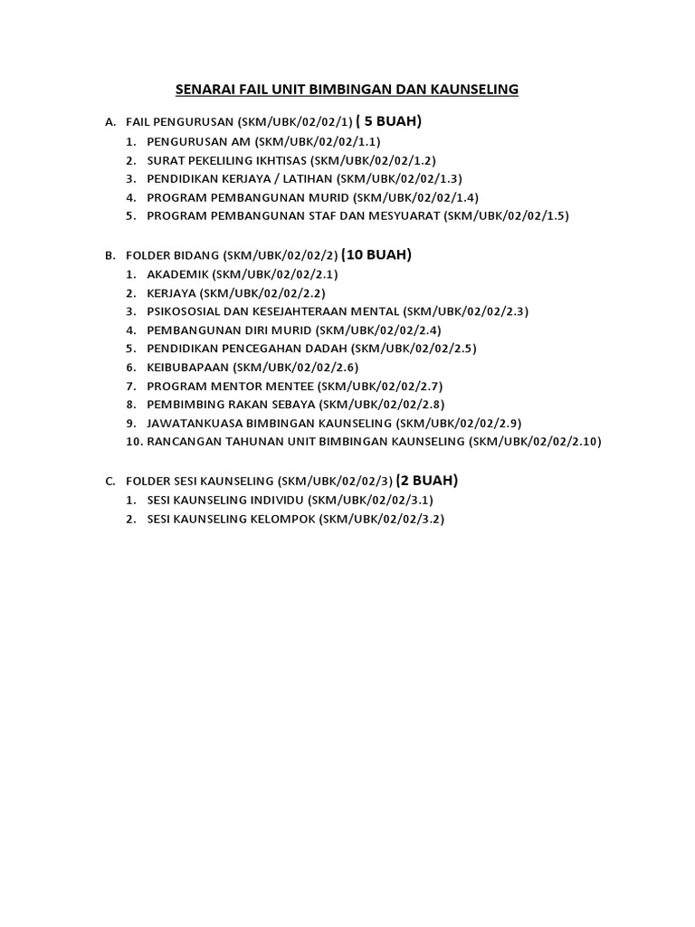 Senarai Fail Unit Bimbingan Dan Kaunseling
