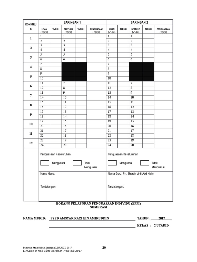 Doc Borang Pelaporan Penguasaan Individu Bppi Numerasi Nama Murid Tahun Kelas Zakwan Danial Academia Edu
