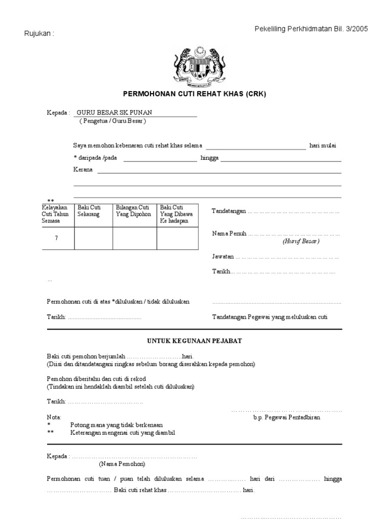 Borang Cuti Rehat Khas Sk Punan