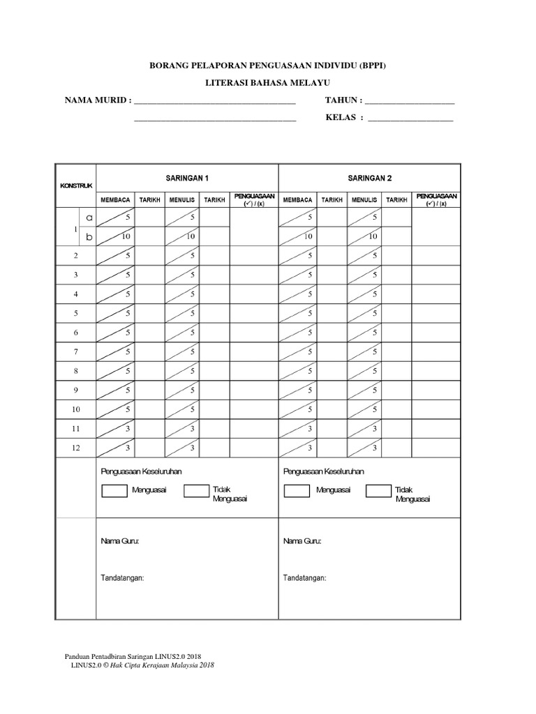 Borang Pelaporan Penguasaan Individu Linus Bi 2018