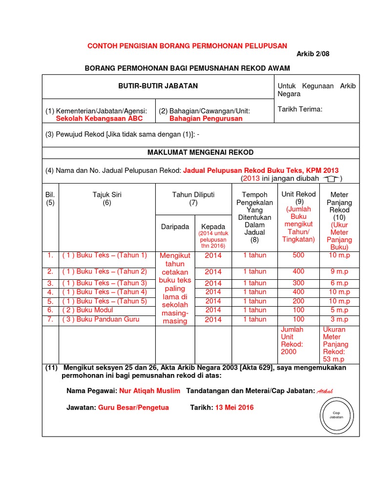Doc Lampiran 2 Contoh Arkib 2 08 Borang Permohonan Bagi Pemusnahan Rekod Awam Manisah Abdullah Academia Edu