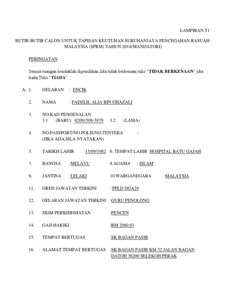 Tetamu Istimewa Panduan Isi Maklumat Peribadi Tapisan Keutuhan Sprm Untuk Epangkat