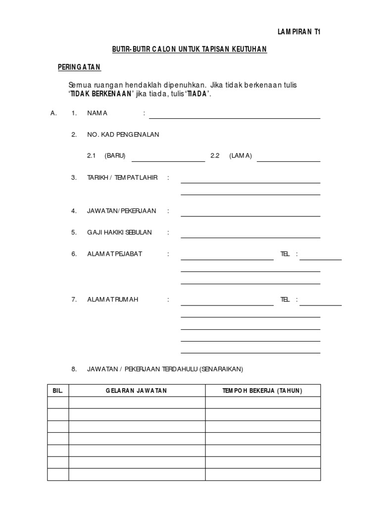Lampiran T1 Tapisan Keutuhan Kosong