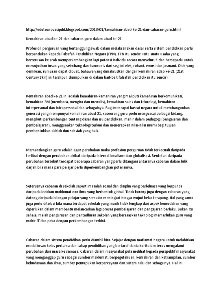 Pendidikan Abad Ke 21 Isu Dan Cabaran