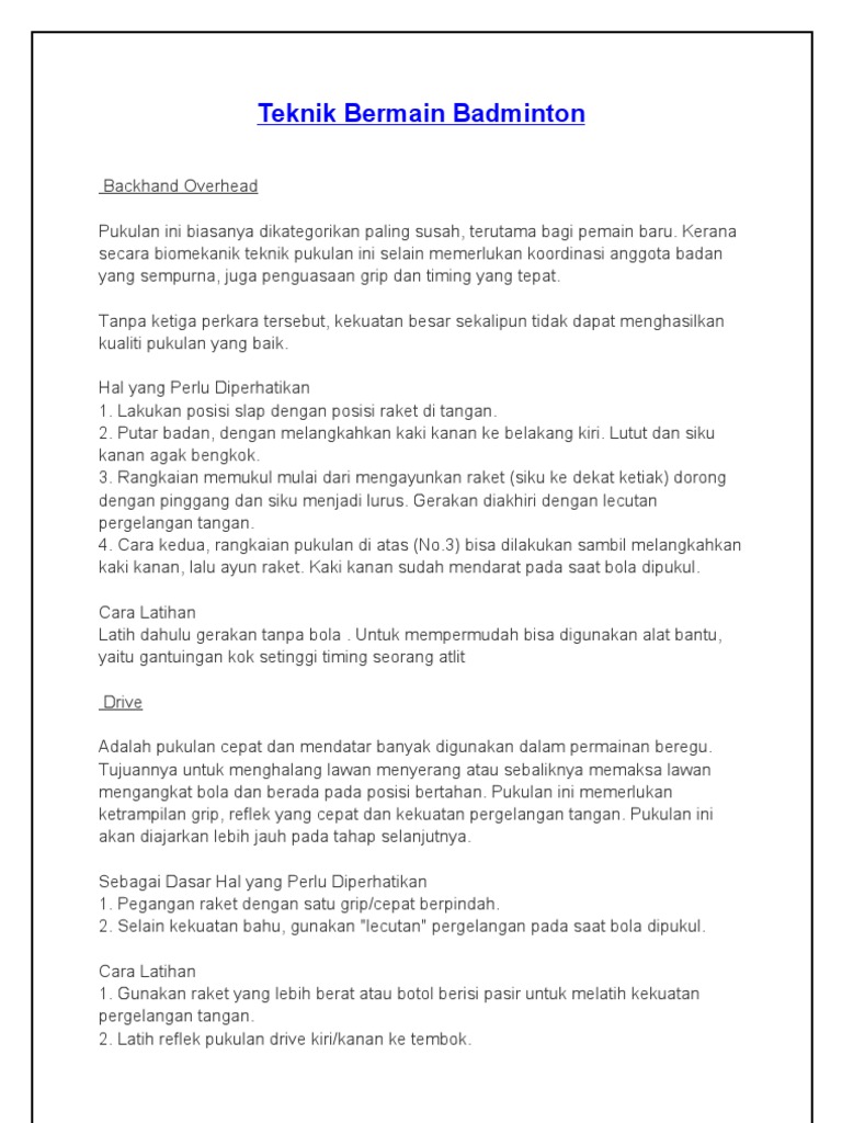 Cara bermain badminton dengan betul. Video ini menceritakan cara2 paling asas untuk melakukan servis backhand rendah. Bukan hanya sekadar perlu mengerti apa saja sarana dan prasarana bulutangkis cara bermain yang benar pun bisa diketahui untuk anda yang ingin bermain bulu tangkis namun belum mengerti betul tentang teknik dan cara permainan bulu tangkis ada baiknya untuk menyimak terlebih dulu cara bermain bulu tangkis untuk pemula terlengkap yang akan kami berikan kali ini. Elakkan memegang raket dengan cara menggunakan telapak tangan seperti memegang golok. Teknik drop shot dapat kamu lakukan dengan cara memukul kok ke area tengah atau depan lawan secara cepat maupun standar.