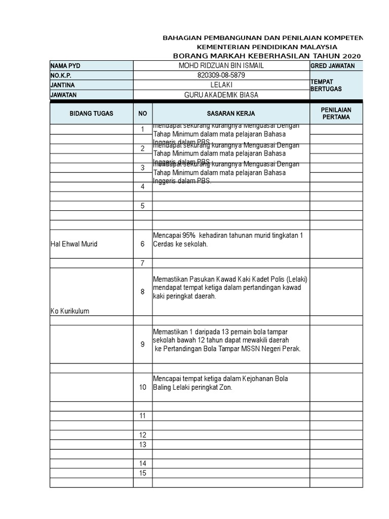 Contoh Borang Keberhasilan Guru Penolong Akademik Biasa Sumber Pendidikan