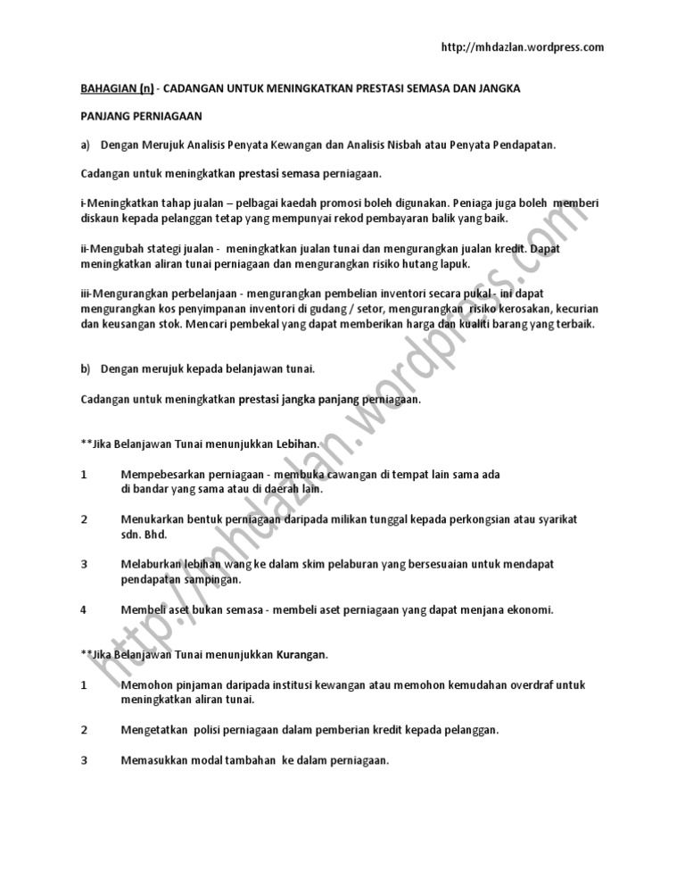 Kerja Kursus Prinsip Perakaunan Tingkatan 5 Cadangan Meningkatkan Prestasi