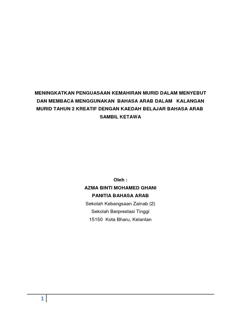 Contoh Laporan Lengkap Kajian Tindakan Berdasarkan Mata Pelajaran Bahasa Arab