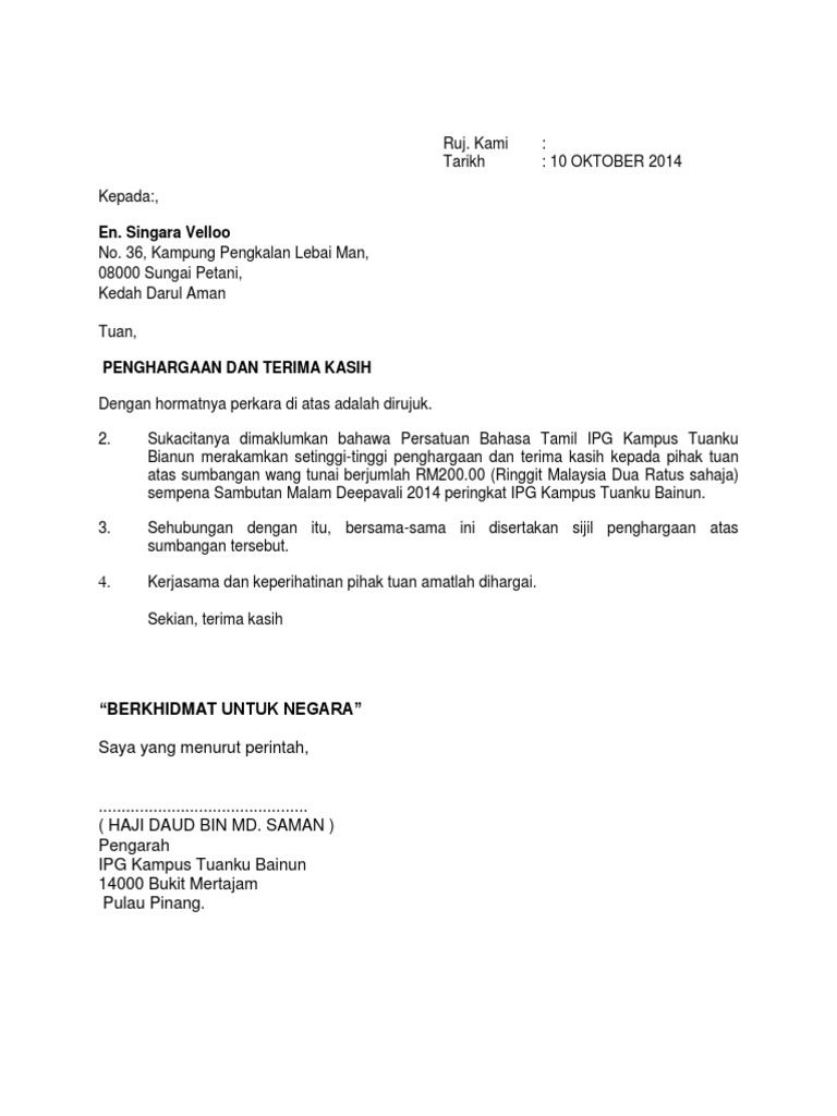 Contoh Surat Ucapan Terima Kasih Atas Sumbangan Kumpulan Surat Penting