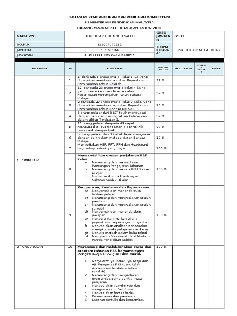 Contoh Borang Keberhasilan Guru Penolong Akademik Biasa Sumber Pendidikan
