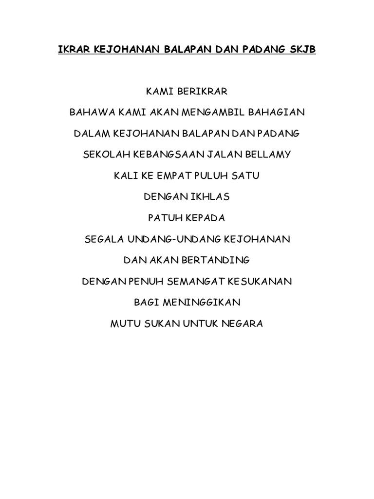 Ikrar Kejohanan Balapan Dan Padang Skjb