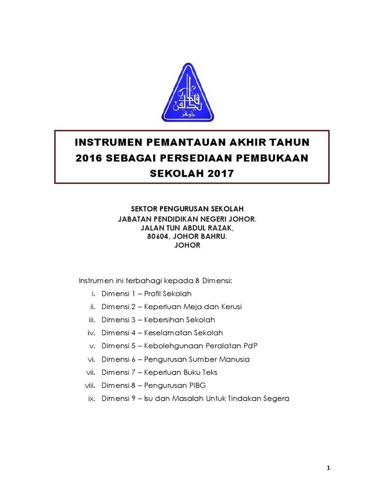 Instrumen Pemantauan Persediaan Penggal Persekolahan 2017 Pdf Document