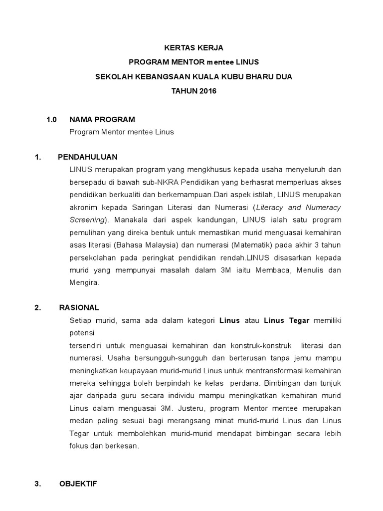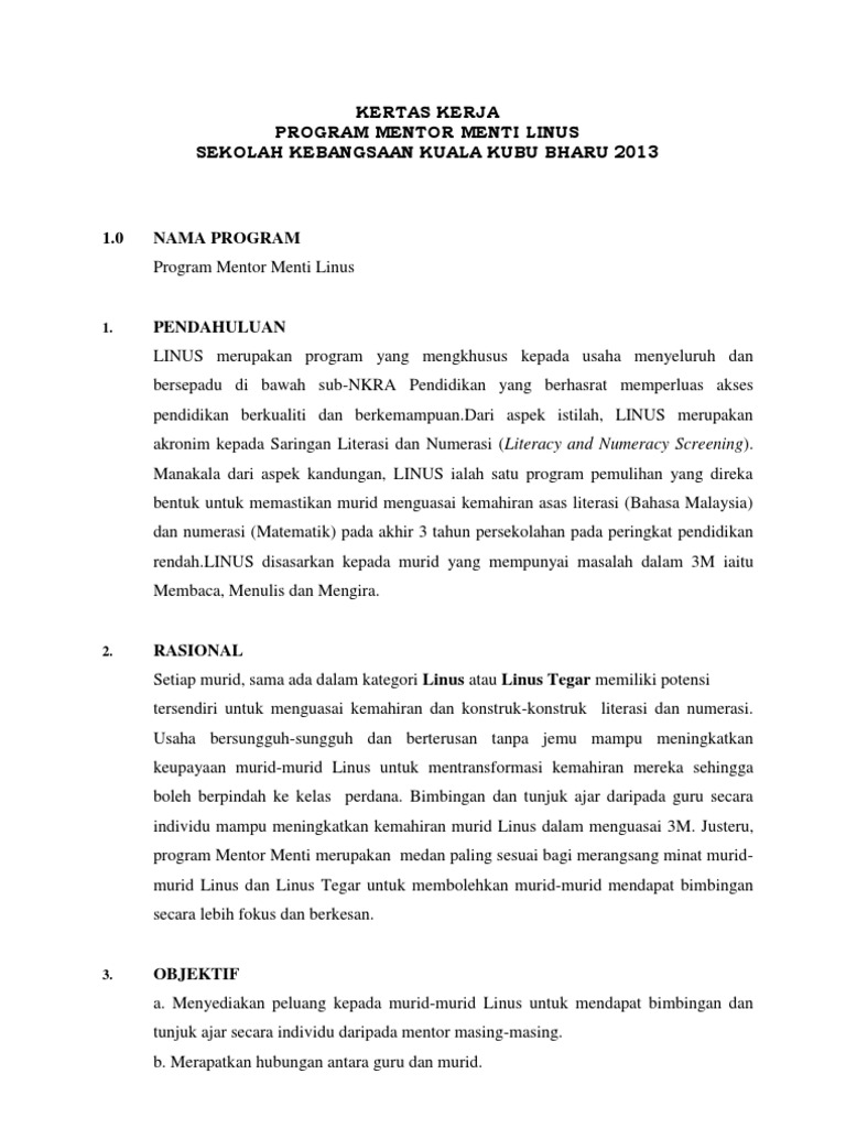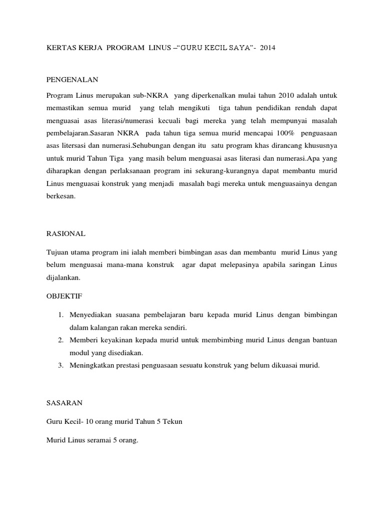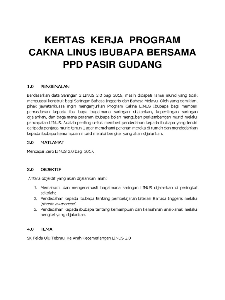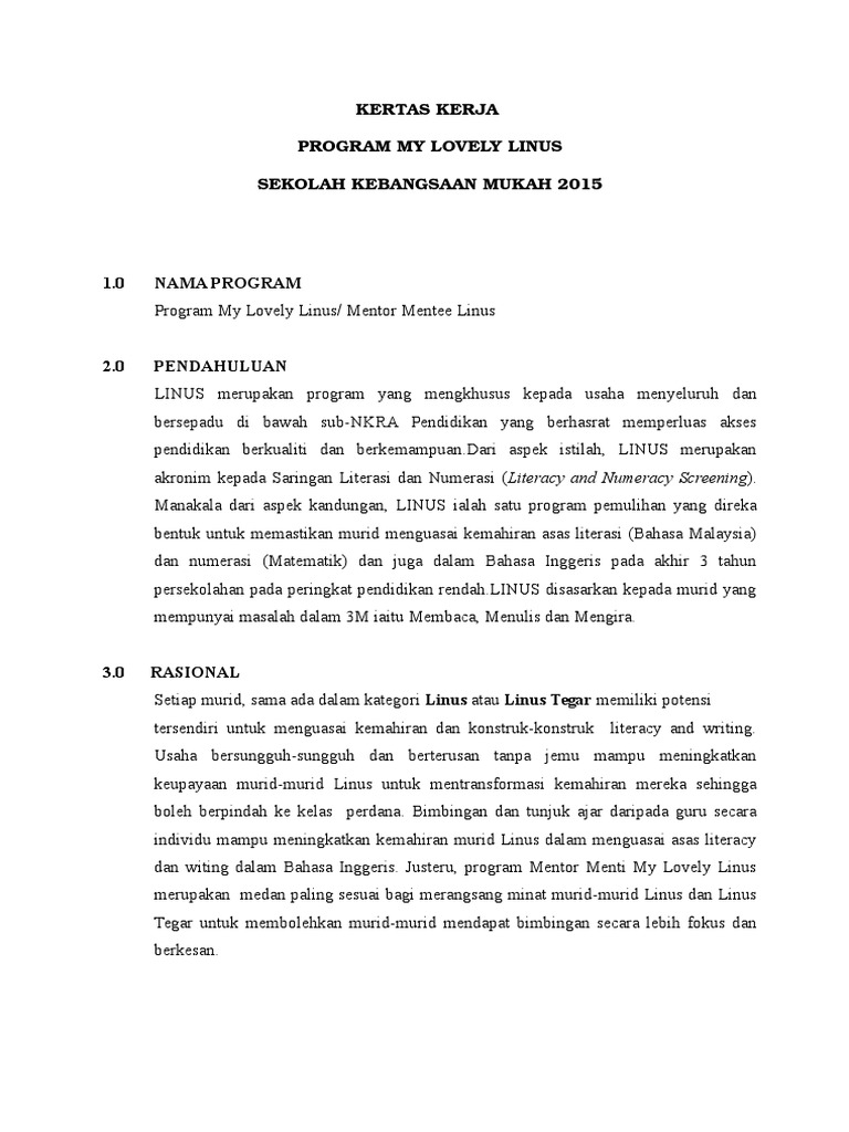 Doc Kertas Kerja Program Linus Sk Mengkuang Ppd Spu T Academia Edu