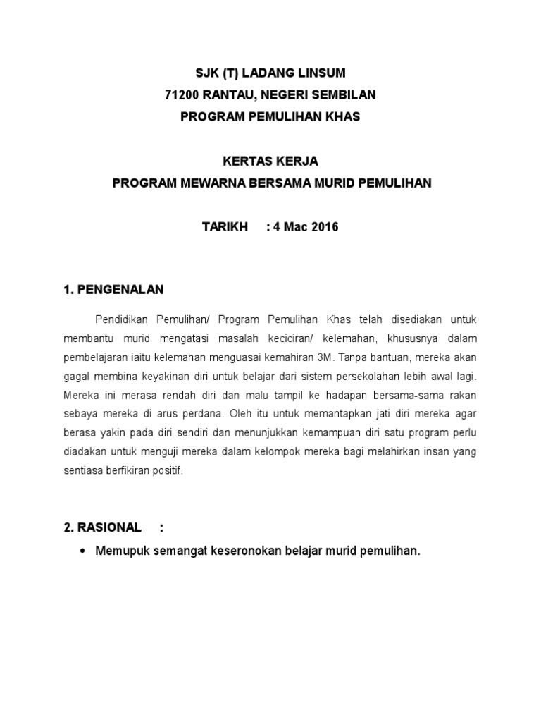 Kertas Kerja Program Pemulihan Khas