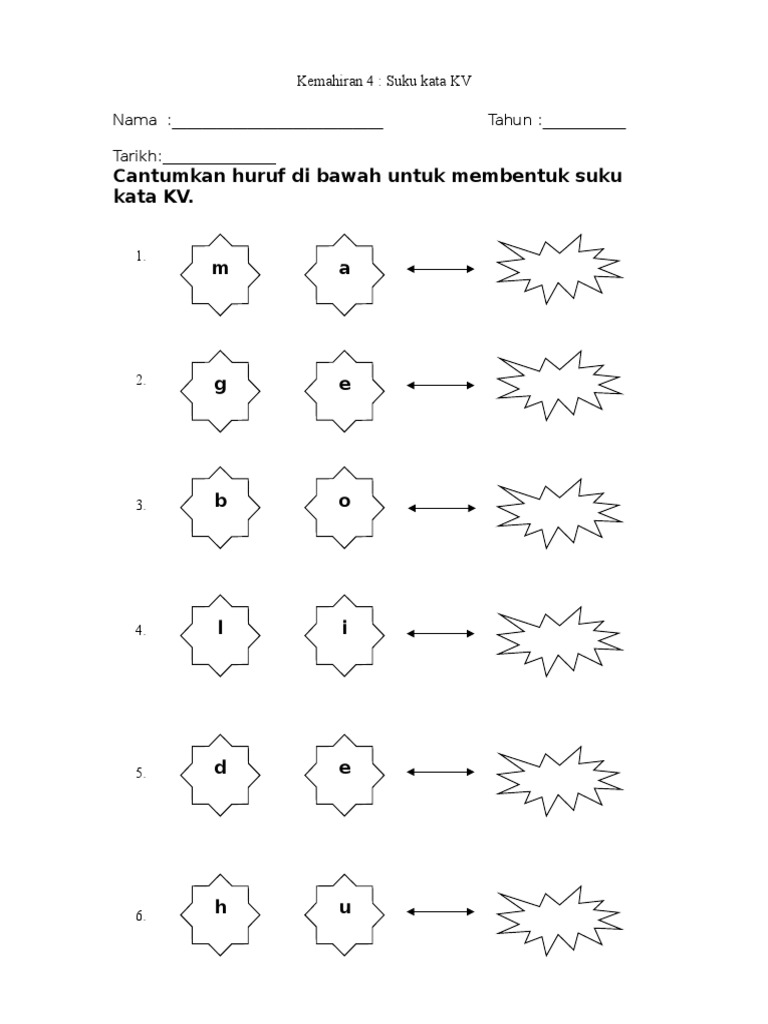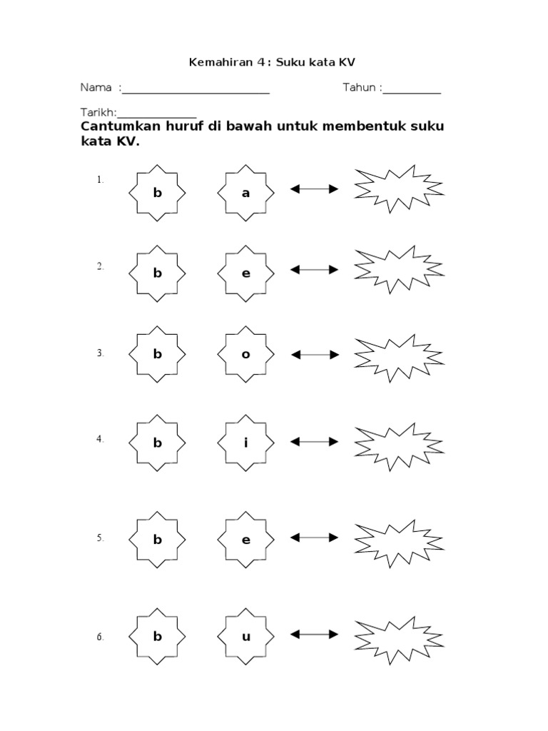 Kvkv Lembaran Kerja Suku Kata Terbuka