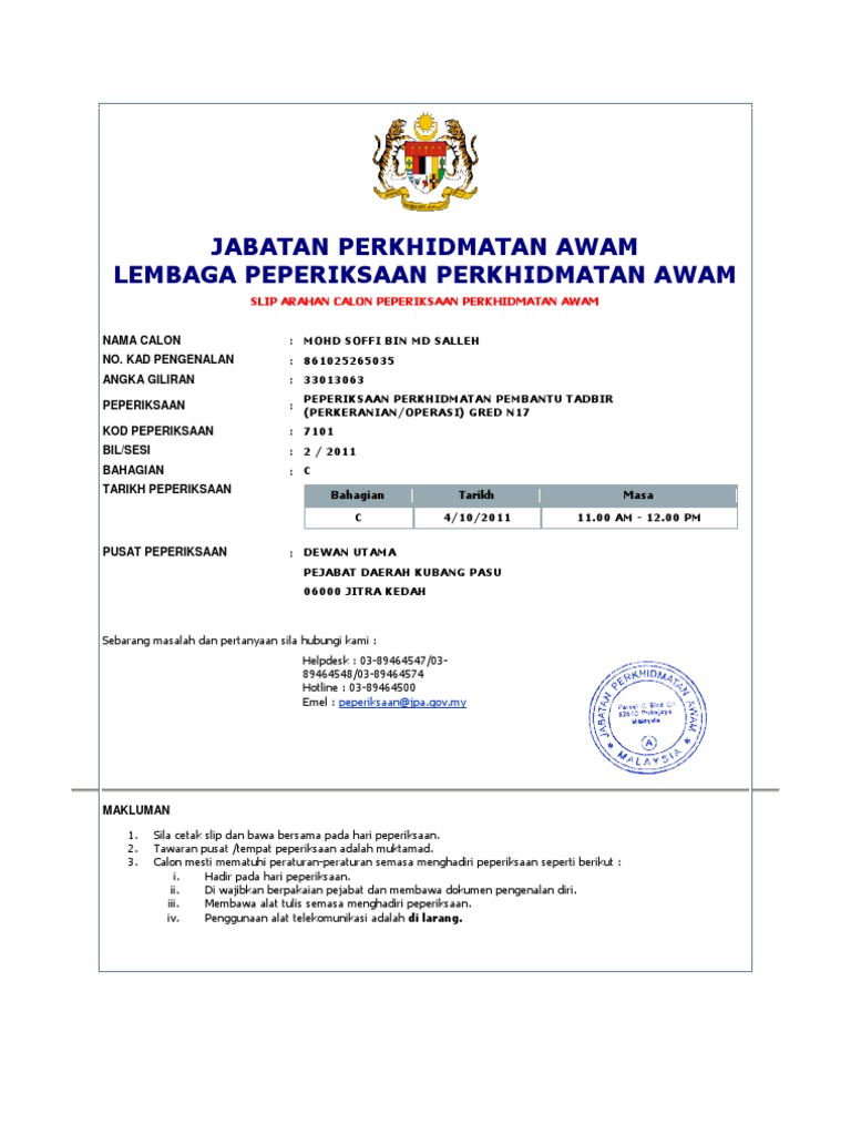 Slip Keputusan Peperiksaan Perkhidmatan Awam Pdf