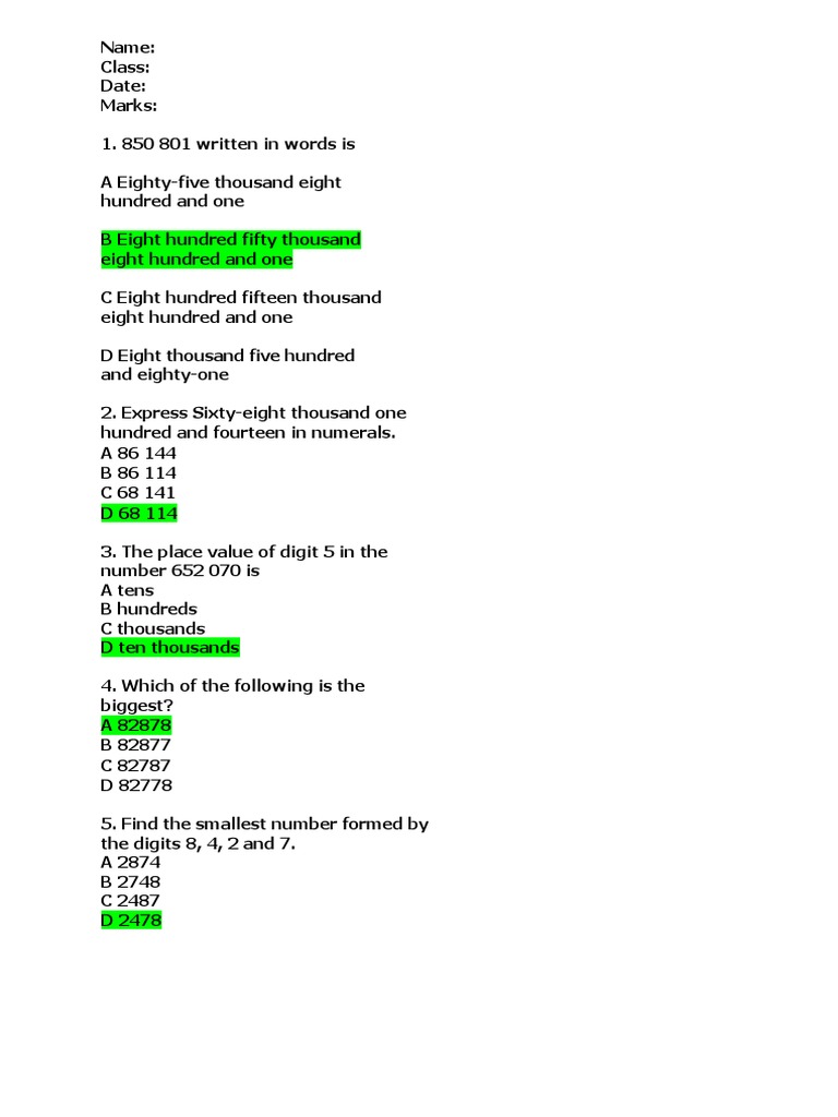 Mathematic Form 1 Question And Answer