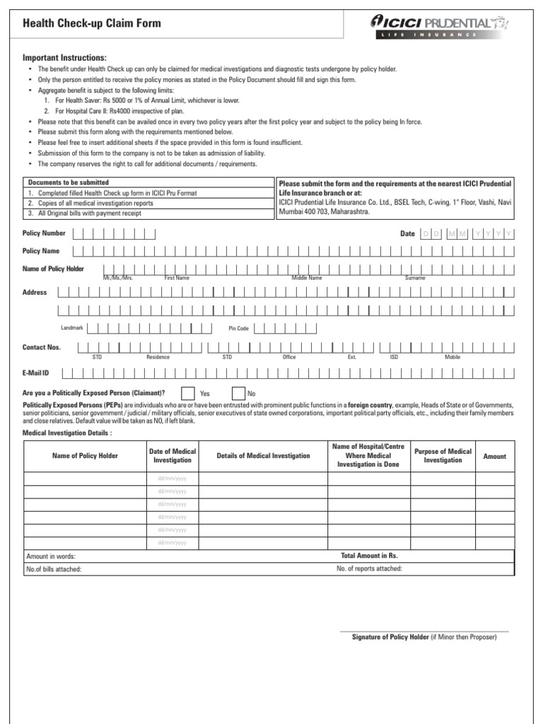 Health Check Up Claim Form 16 March Cheque Financial Services