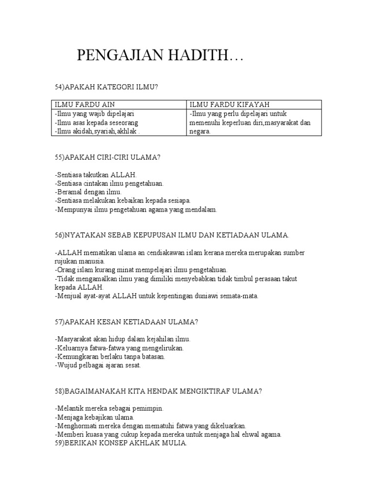 Pengajian Al Quran Dan Al Sunnah Ulum Hadith Tingkatan 4