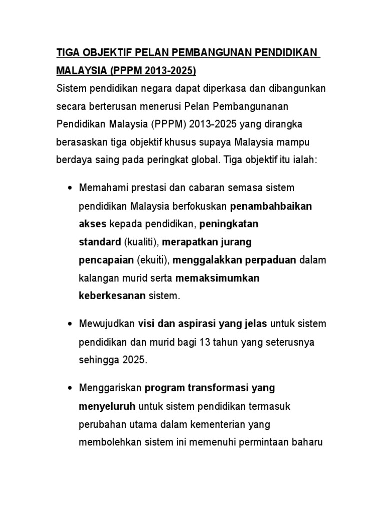 3 Objektif Pelan Pembangunan Pendidikan Malaysia Pppm 2013 2025