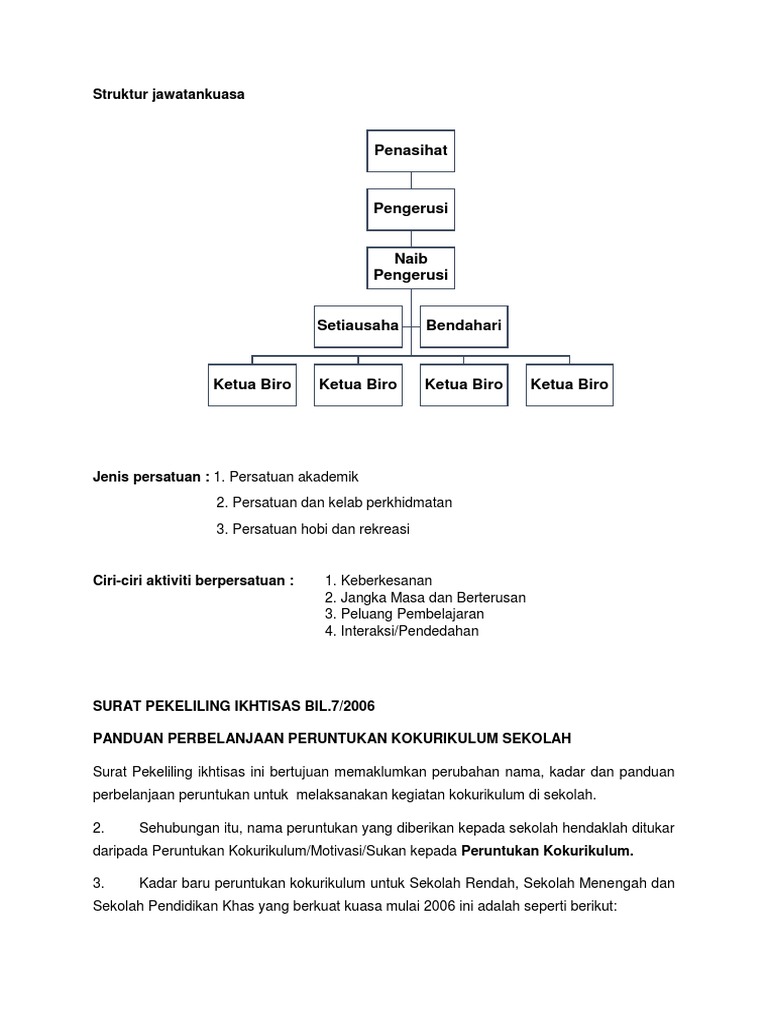 Surat Pekeliling Ikhtisas Bil 7 2006 Panduan Perbelanjaan Peruntukan Kokurikulum Sekolah
