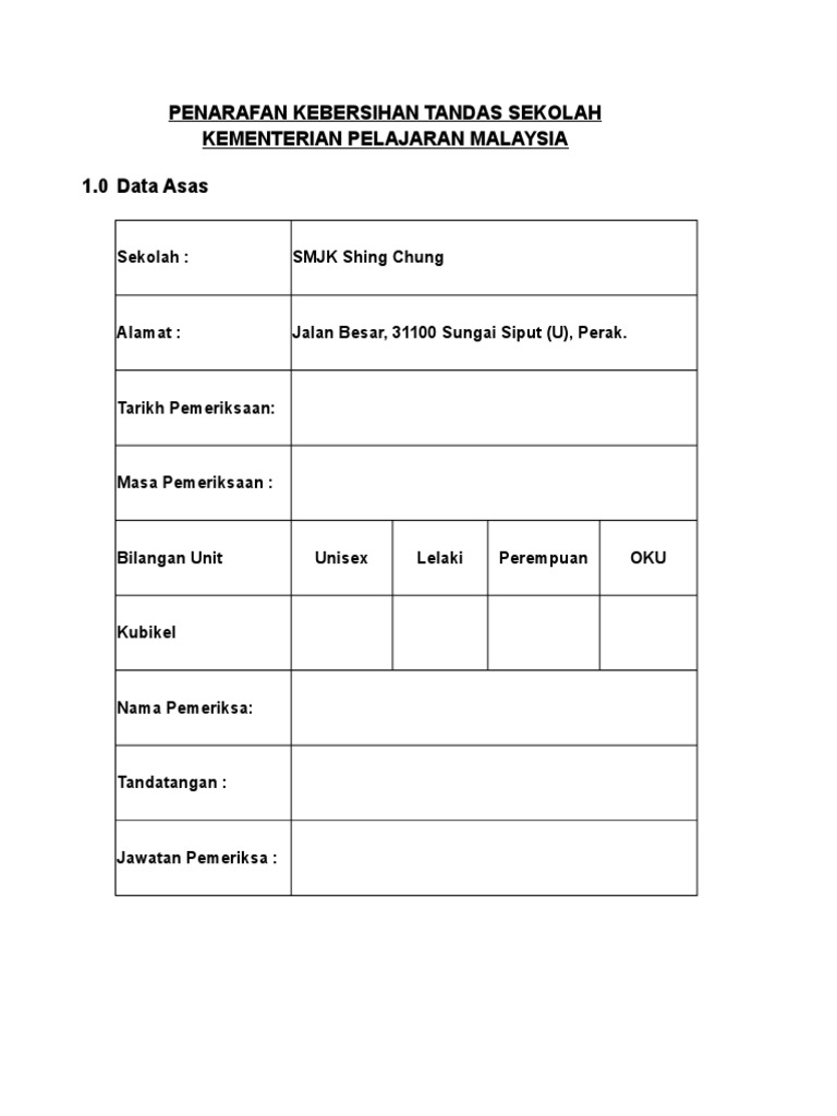 Borang Penarafan Kebersihan Tandas Sekolah Ppd Bachok
