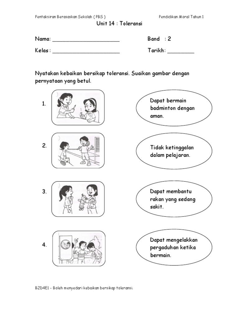Insrument Pbs Kssr Pendidikan Moral Tahun 1 Toleransi Band 2