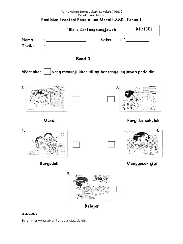 Evidens Pbs Pendidikan Moral Tahun 1 Nilai Bertanggungjawab Band 1 6