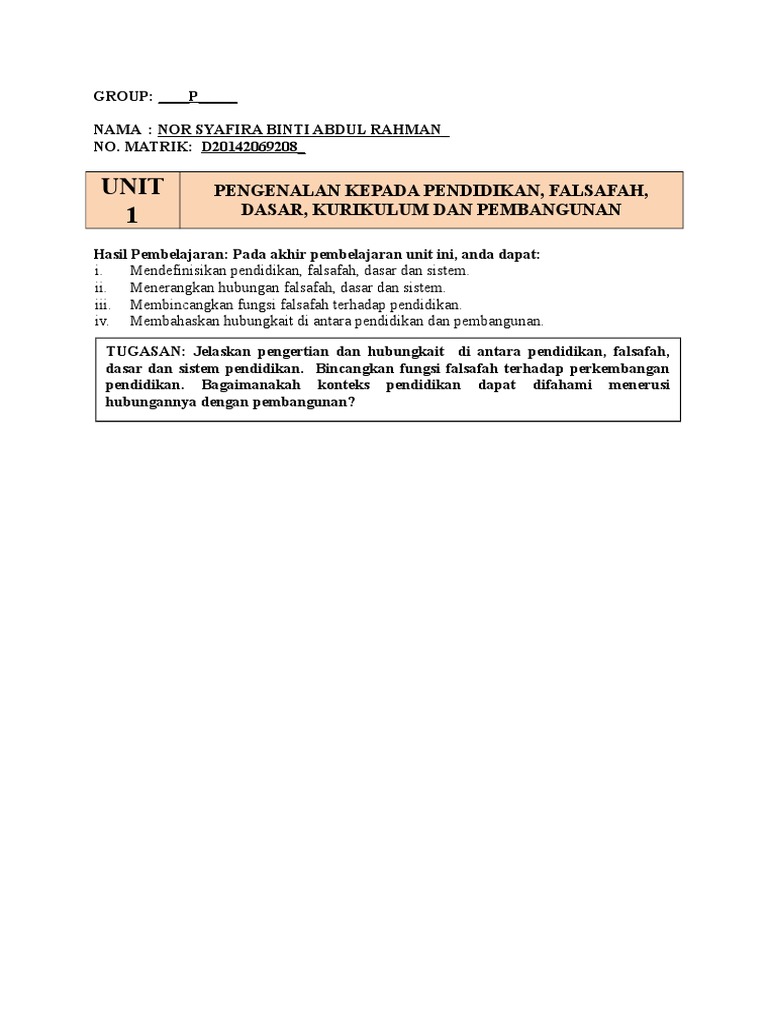Unit 1 Group D Nama Gelcylliz Mitchel No Matrik D20151070667 Unit 1 Pengenalan Kepada Pendidikan Falsafah Dasar Kurikulum Dan Pembangunan Hasil Course Hero