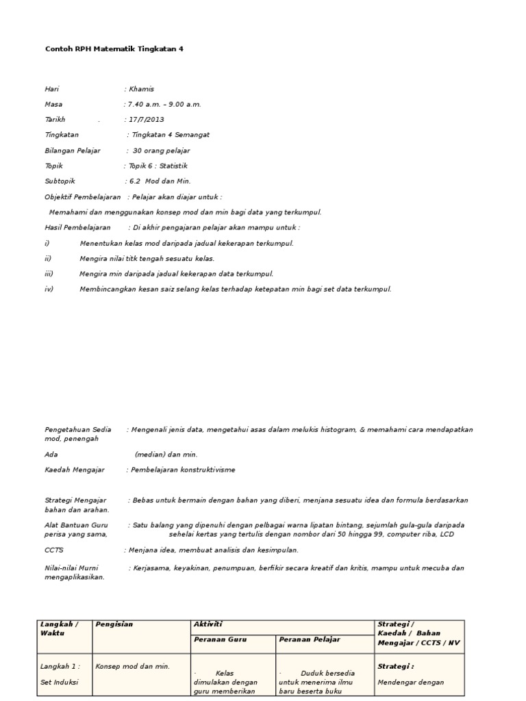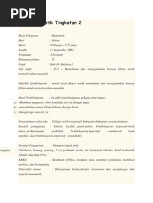Contoh Rph Matematik Tingkatan 2 Pdf Document