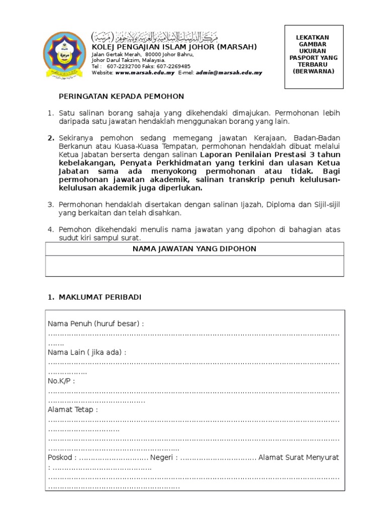 Borang Permohonan Marsah