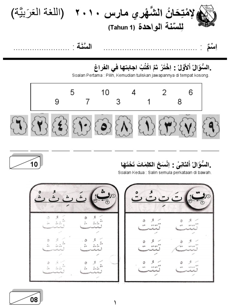 Bahasa Arab Tahun 1 Ujian Mac 2010