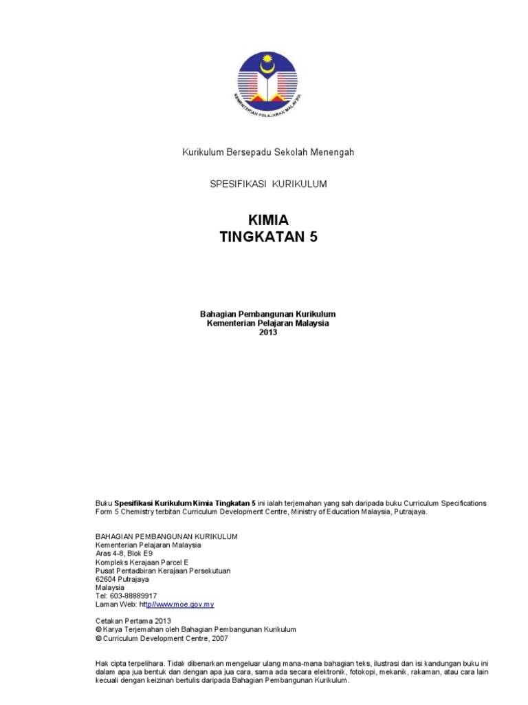 Huraian Sukatan Pelajaran Kimia Tingkatan 5 2013