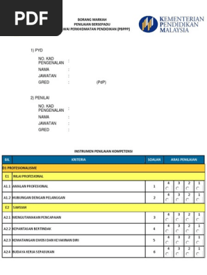 Borang Markah Penilaian Bersepadu Pegawai Perkhidmatan Pendidikan Pbppp
